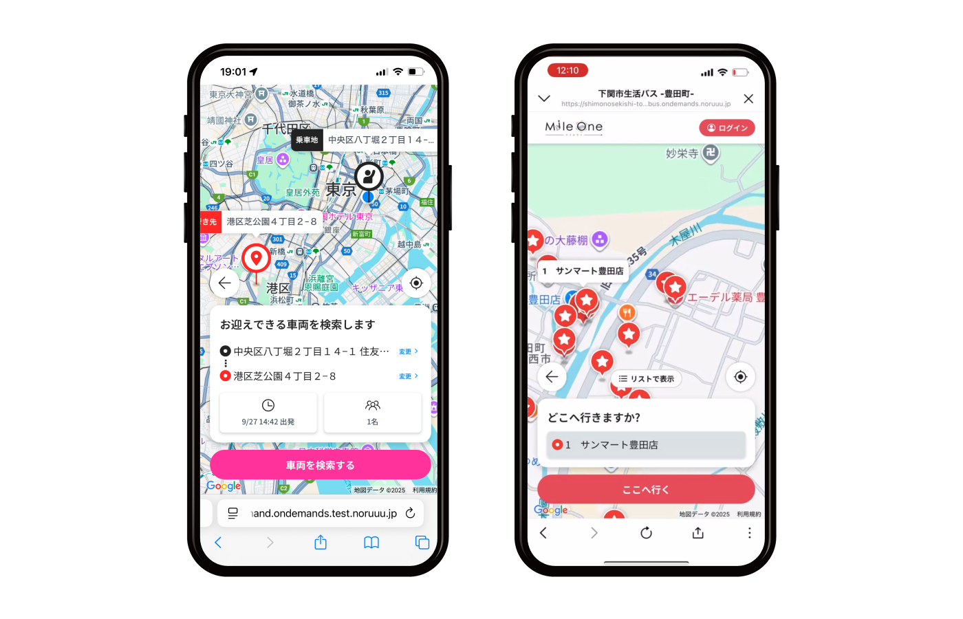 Door to Door方式はもちろん、バーチャルバス停方式さらには、それらを組み合わせたハイブリッド型の運行も可能です。