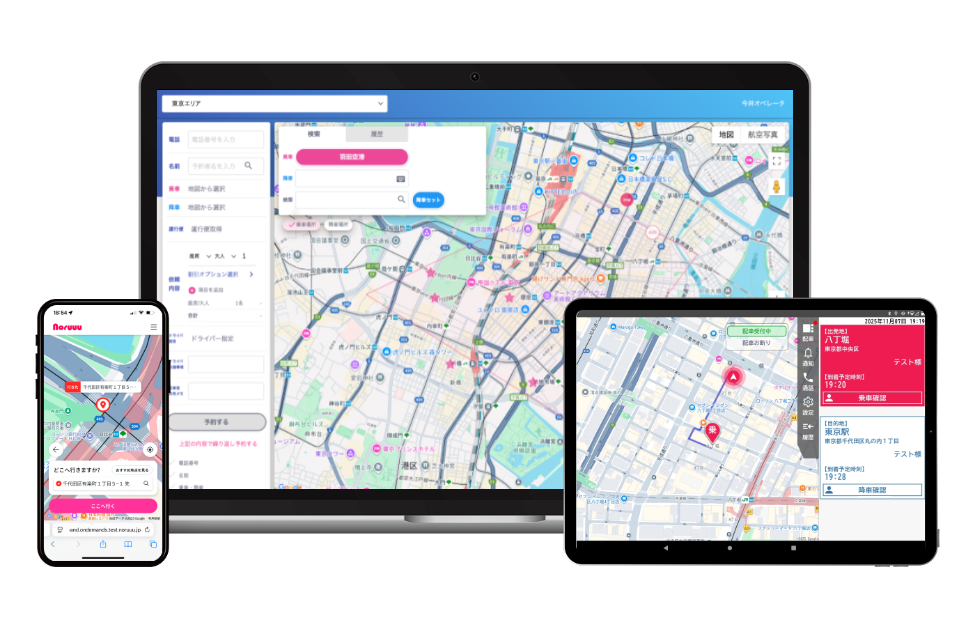 即時配車や事前予約さらには定時予約など様々な配車に対応しています。操作性やUIを重要視した使いやすいアプリになっています。