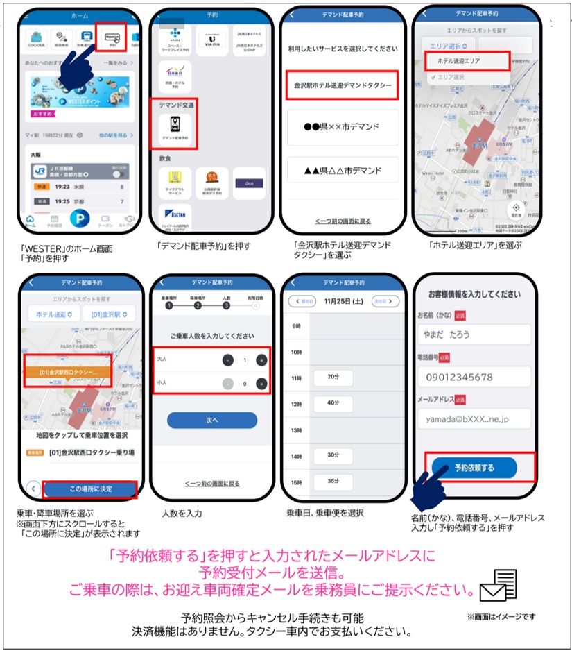 ・「金沢駅ホテル送迎デマンドタクシー」を選択し、WESTERからのご予約の場合と同様に操作してください